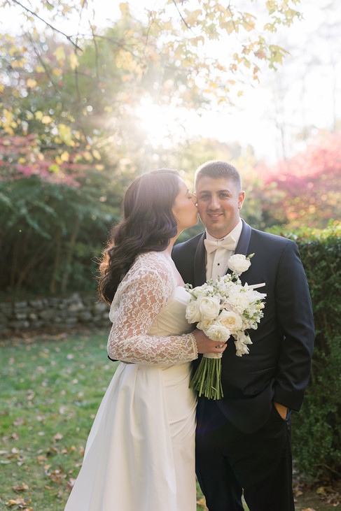 Madeline and Joe’s wedding at Lord Thompson Manor was the epitome of timeless elegance, with just a touch of spontaneity to make it unforgettable. Between the gorgeous black-tie aesthetic, lush all-white florals, candles for days, and antique silver and vintage gold accents, the day exuded sophistication from start to finish. And when an unexpected power outage left the band unable to perform, our string quartet stepped in to save the day, seamlessly adapting to keep the party going.